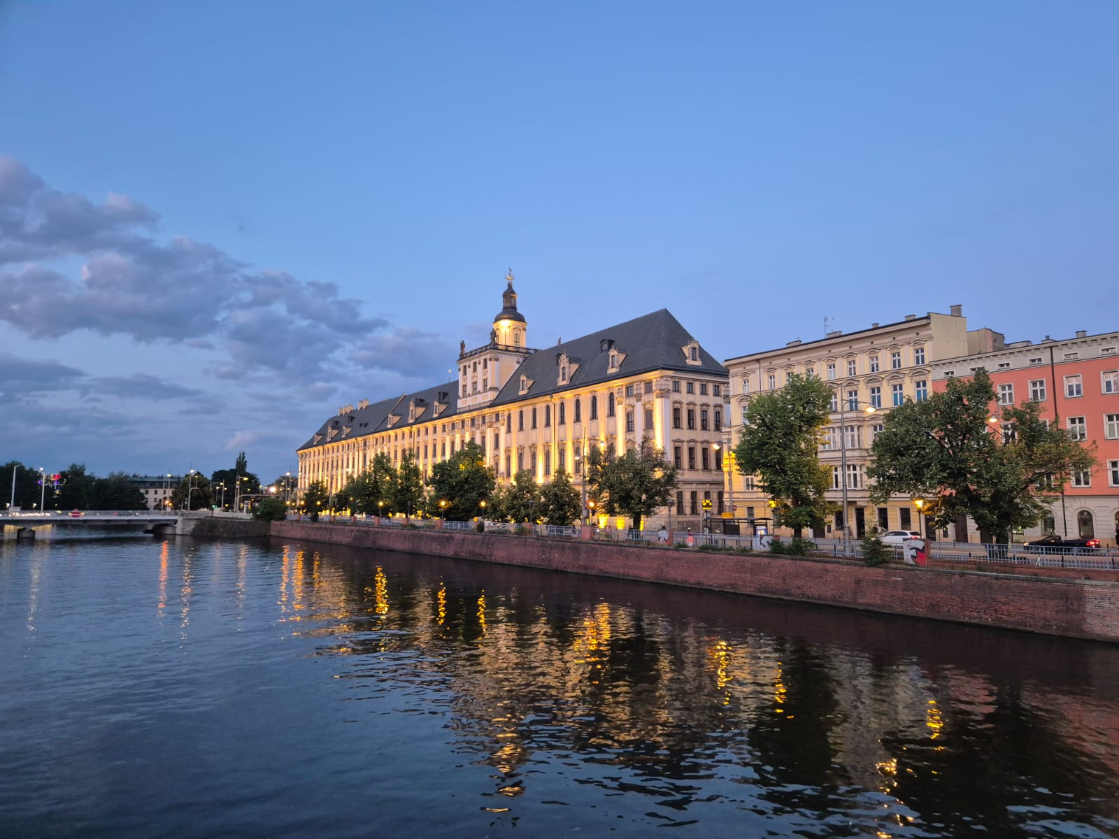 Option 2. After leaving the railway station on the northern side, turn left and walk west along Piłsudskiego Street for about 200 meters until you reach the Arkady-Capitol stop. Take tram 7 (direction: Poświętne), ride 6 stops and get off at Ossolineum (Uniwersytecka). The main building of the university is approximately 200 m to the west.